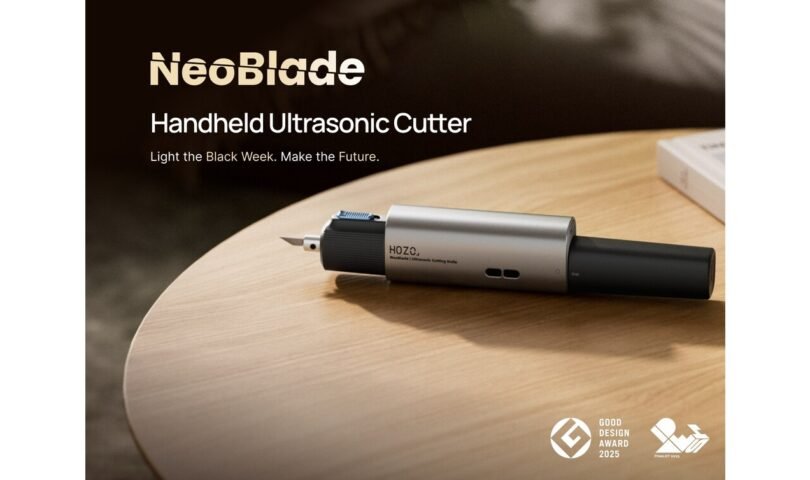 HONG KONG, Nov. 16, 2025 /PRNewswire/ — HOZO today announced the launch of the NeoBlade Wireless Ultrasonic Cutter, a compact handheld tool designed to enhance precision cutting for professionals and hobbyists. Weighing just 4.4 oz (124 g) without the battery and 6.7 oz (190 g) with the battery, NeoBlade is among the lightest ultrasonic cutters available, offering exceptional portability and flexibility for users engaged in DIY crafts, 3D printed toys, DIY bookcases, DIY bookshelves, DIY headboards, and intricate detail projects.
