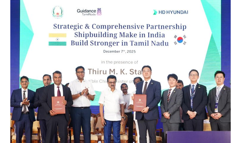 HD Hyundai announced on Sunday, December 7, that it signed a strategic and comprehensive partnership with the Tamil Nadu state government regarding the establishment of a new shipyard in India. The ceremony was held recently in Madurai, southern India, with the attendance of Tamil Nadu Chief Minister M.K. Stalin, State Industries Minister T.R.B. Rajaa, and Head of Corporate Planning at HD Korea Shipbuilding & Offshore Engineering, Choi Hannae.