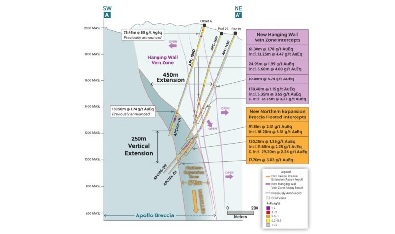Ari Sussman, Government Chairman, commented: “It’s time to reframe our view of Apollo—not merely as a mineralized breccia system, but as a much larger entity encompassing the breccia body and surrounding sheeted vein zones with the potential to extend strike lengths by hundreds of meters. Most exciting is the serendipitous discovery of mineralization in the Hanging Wall Vein Zone during directional drilling of mother holes, which were intended solely to establish kick-off points for testing the high-grade Ramp Zone at depth. With targeted drilling now planned for the Hanging Wall Zone in 2026, I’m optimistic this will usher in a new era of significant resource expansion at Apollo.”