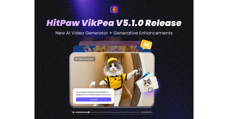 NEW YORK, Dec. 9, 2025 /PRNewswire/ — HitPaw, a leader in AI-powered multimedia solutions, announces the launch of HitPaw VikPea V5.1.0. This release introduces groundbreaking features including the highly anticipated AI Video Generator, AI Generative Model and enhanced Frame Interpolation Model, all designed to elevate video enhancement and creative workflows.