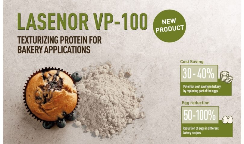 “LASENOR® VP-100 responds to consumer demands for plant-based alternatives and allergen free options,” exclaims Viktoriia Kubrakova, product manager of LASENOR VP-100 for Lasenor. “Food manufacturers are actively seeking solutions that allow partial or full egg reduction, especially in light of the volatile egg supplies and price fluctuations.”
