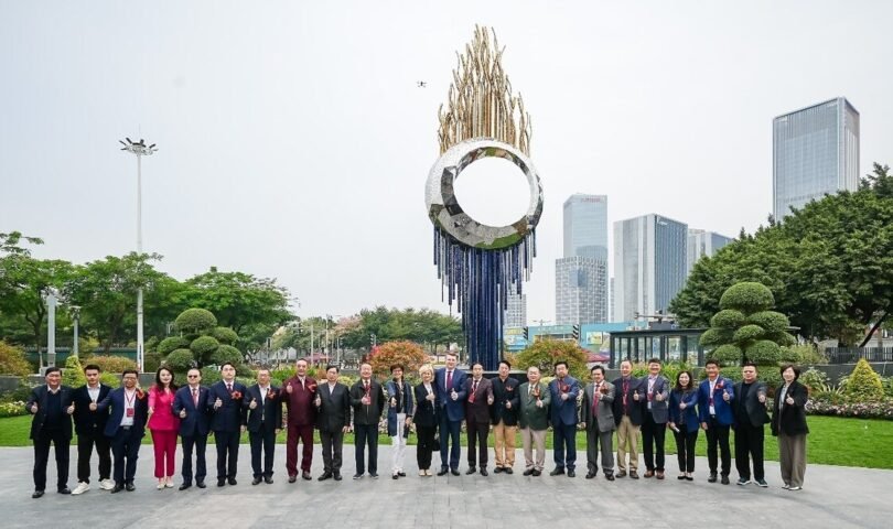 GUANGZHOU, China, Dec. 9, 2025 /PRNewswire/ — On the morning of December 4, the grand unveiling ceremony of the One Heung Kong “Eye of the Future”, a project by Heungkong Group, unfolded in China’s Greater Bay Area. This global artistic event marked the official establishment of a global landmark for the art of future living. The large-scale stainless steel sculpture “Eye of the Future”, a masterpiece crafted with immense dedication by Mr. Yuan Xikun—the first artist to be honored with the United Nations “Artistic Master for Environment”—made its debut. At an impressive 9.8 meters, it not only adds a bold artistic stroke to the Greater Bay Area’s skyline but also showcases China’s profound cultural heritage and its far-reaching vision for humanity’s future to the world.