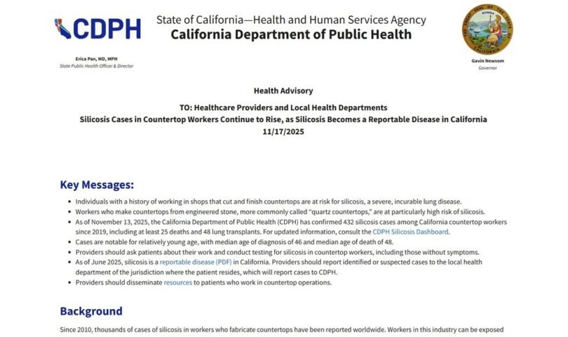 The Massachusetts case comes to a Hispanic guy in his 40s who labored for 14 years fabricating and putting in synthetic stone counter tops. Alike outbreaks had been documented in states throughout america. In California isolated, showed instances have surged from 13 in 2019 to 447 as of December 2025, together with 25 deaths and 49 lung transplants.