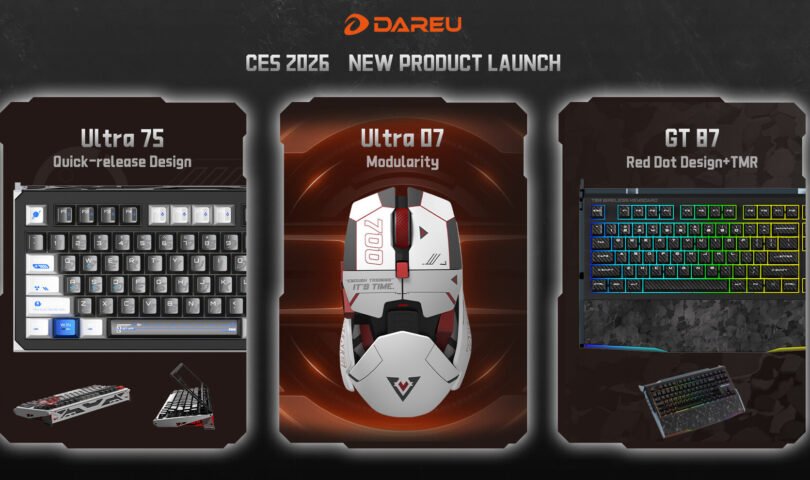 LAS VEGAS, Dec. 30, 2025 /PRNewswire/ — DAREU, the gaming peripheral brand built on the ethos “DARE TO BE YOU,” is set to present its latest lineup of gaming peripherals at CES 2026, unveiling three new products that reflect the brand’s ongoing pursuit of performance, design innovation, and player-centric engineering. The showcase will take place from January 6 to 9, 2026, at the Las Vegas Convention Center, South Hall 1, Booth 31931, where visitors can experience the Ultra75 hall effect magnetic keyboard, the Ultra07 gaming mouse, and the Red Dot Design Award–winning GT87 keyboard.
