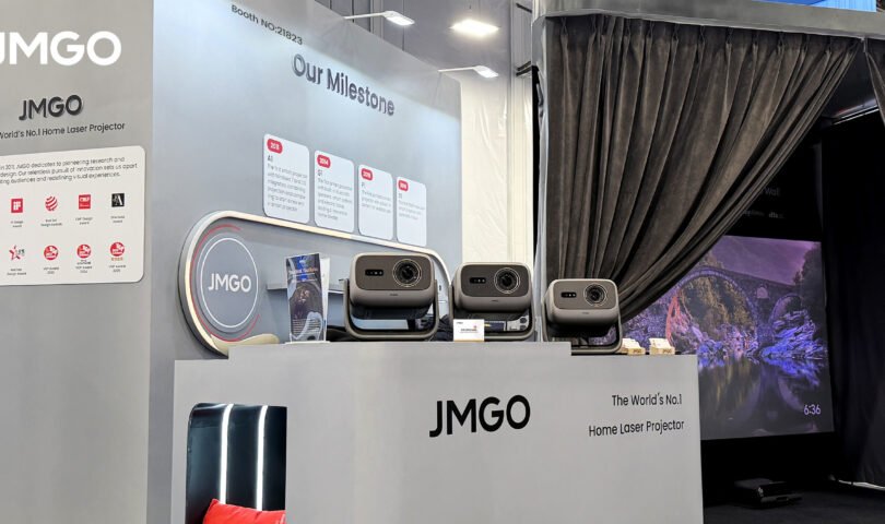 In addition to the flagship preview, JMGO is featuring the O2S Ultra ultra-short-throw laser projector, a product that has gained strong momentum across North American and European markets. Designed for space-efficient home setups, O2S Ultra delivers a massive 100″ display from only 6.6 inches away from the wall with its class-leading 0.16:1 Ultra Short Throw.