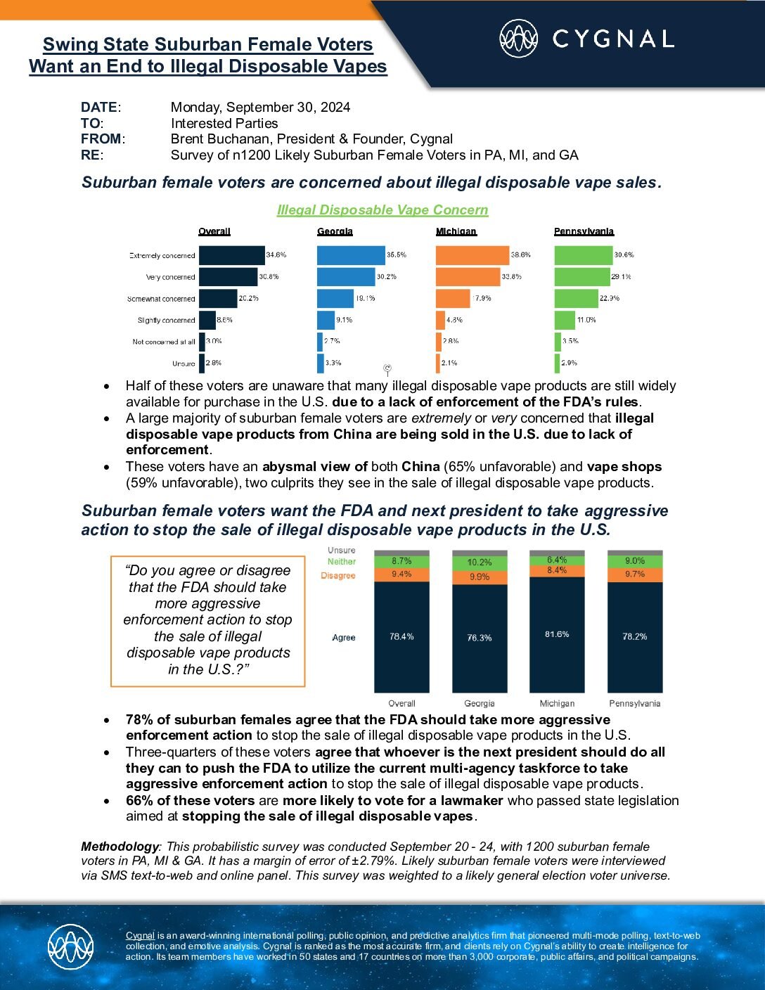 Suburban Female Voters in Battleground States Demand FDA Take Action to Stop the Flood of Illegal Disposable Vapes